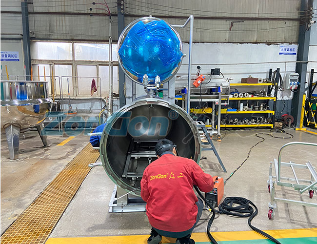 * 鍋(guō)體結構與材質: 根據壓(yā)力需求選擇鍋體壁厚和結構(gòu)強度(如圓形(xíng)/方形(xíng)門)。材質通常為(wéi)食品(pǐn)級 SUS304 或(huò) SUS316L 不鏽鋼(gāng),內壁(bì)拋(pāo)光等級(如(rú) Ra≤0.6μm)需明確。